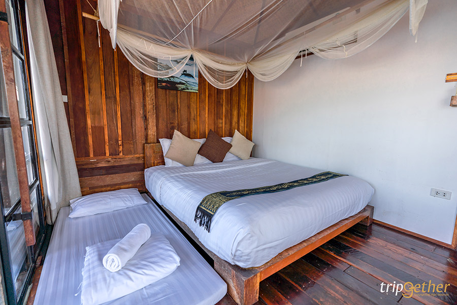 ไปต่อกันที่บ้านหลังใหญ่ Pana Houseboat ที่สามารถรองรับผู้เข้าพักได้ถึง 12 คน มี 4 ห้องนอน 4 ห้องน้ำ และโถงนั่งเล่น เหมาะสำหรับครอบครัวใหญ่หรือคนเพื่อนเยอะจัดหลังนี้ได้เลย