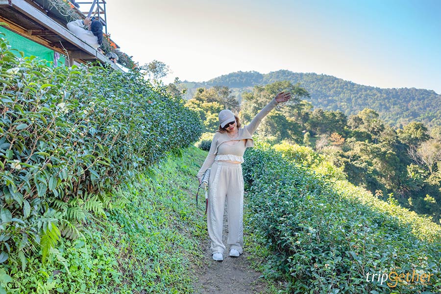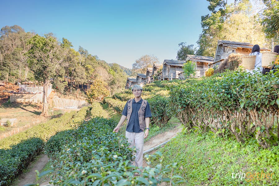 ถ่ายรูปเช็คอินหน่อยจ้า หรือใครจะยืมสะพายตะกร้าเก็บใบชาที่นี่ก็มีให้ยืมถ่ายรูปกันด้วยนะ