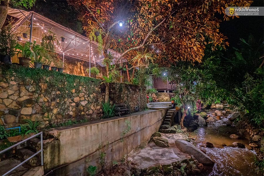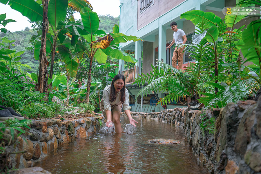 ส่วนหลังบ้านมีน้ำตกเล็กๆ ให้เล่นกันแบบชุ่มฉ่ำด้วย
