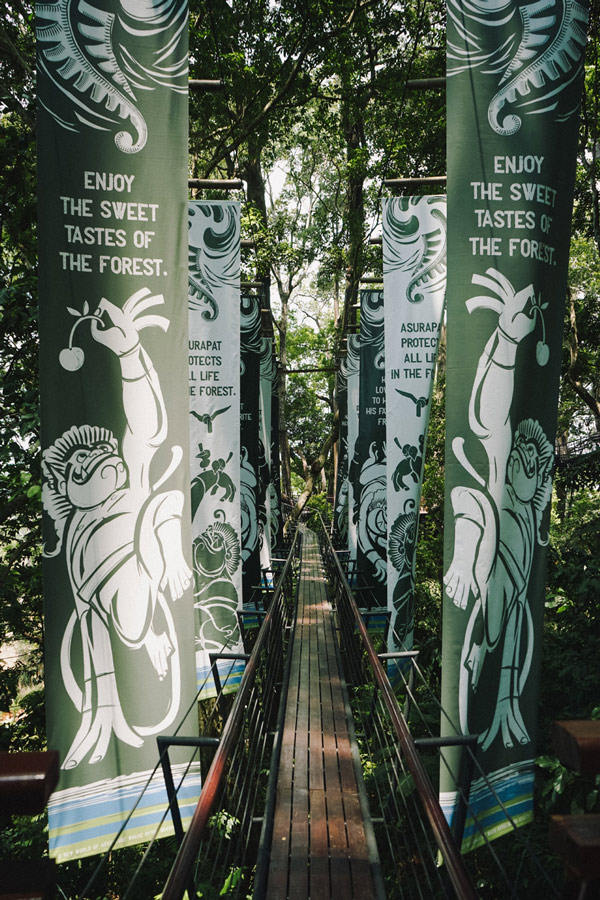 ต้นไม้โคตรสูงเลย ผ่านตรงนี้จะเป็นทางเดินเล็กๆ ถ่ายรูปน่าจะออกมาสวยแน่ๆเลย นี่ไง เจอแล้วผู้ปกป้องผืนป่า ” อสุรผัด ” ใครรู้จักบ้างยกมือขึ้นหน่อยครับ อสุรผัด เป็นบุตรของหนุมานกับนางเบญกาย มีหน้าเป็นลิง แต่มีหัวและตัวเป็นยักษ์ มีสีเหลืองเลื่อม Sky Walk เป็นพื้นที่ดูแลของ “ อสุรผัด ” บุตรชายของหนุมาน ลิงครึ่งยักษ์ผู้ดูแลผืนป่าแห่งนี้ ถึงแม้เขาจะมีเชื้อสายเป็นยักษ์และร่างกายใหญ่โต แต่จิตใจเขาอ่อนโยนมาก อสุรผัดรู้จักต้นไม้ทุกต้นในป่าแห่งนี้เป็นอย่างดี เด๋วพี่อสุรผัดจะพาเพื่อนๆทุกคนไปผจญภัยกันต่อ ตามหาของล้ำค่าในป่าใหญ่กัน ตามมากันเลย