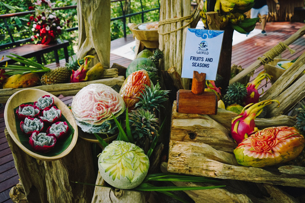 เมื่อผ่านจากสะพานไปก็เจอกับ ของล้ำค่าในป่าใหญ่ Tropical Fruit on Sky Walk ผลไม้นานาชนิด ลายตาจนเวียนหัวรีบหยิบจานลองชิม แถมยังมี น้ำผลไม้ให้ refresh อีกเพียบเลยยย เลอค่าจริง