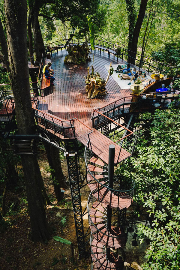 นี่เป็นมุมที่เอามองเห็นจากพื้นครับ ต้นไม้ใหญ่สูงมากๆ เราต่างมองหน้าแล้วพูดกันว่าถ้าที่บ้านมีมุมแบบนี้นะ จิบเบียร์กันสนุกแน่นวน รอบๆตรงนี้มีต้นไม้เยอะมากๆทั้งต้นตะเคียน ต้นกันเถา ต้นประด่าป่า ต้นผลไม้ก็มีนะ ทั้งทุเรียน เงาะ จำปาดะ ขนุน ลองกอง