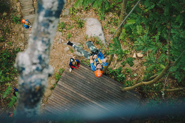 ไปกันต่อเลยกับกิจกรรมโหนสลิง Zipline มีทั้งหมด 7 Platforms แค่อันแรกก็เสียวจนเยี่ยวเล็ดแล้ว