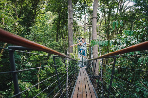 ความอลังของอาคาร สิ่งปลูกสร้างหรือเครื่องเล่นเท่านั้นยังไม่พอ ตลอดทางผมได้ฟังเรื่องเล่า จากคุณแบงค์ พี่อีกคนที่ได้พาชมเที่ยว ทำให้รู้เลยว่าที่นี่ไม่ได้สร้างแค่กิจกรรมมันส์ๆ เพียงอย่างเดียว ยังมีการสอดแทรกเรื่องราวของวรรณคดีไทยอย่างเช่น “หนุมาน” ไว้อีกด้วย โดยแบ่งการเล่าเรื่องเป็นโซนต่างๆของกิจกรรม เช่น กิจกรรม Sky Walk เป็นเรื่องราวของ อสุรผัด Zipline เป็นฐานของ หนุมาน และโปรเจคสุดท้ายที่กำลังจะเกิดขึ้นเร็วๆนี้ Canal Boat เป็นเรื่องราวของ มัชฉานุ เที่ยวไปด้วย ให้ผมเล่าเรื่องไปด้วยแล้วกันนะครับ Lets go เจ้าหน้าพาผมไปเที่ยวที่ฐานแรก กับกิจกรรม Sky Walk (แห่งแรกของภาคใต้) มาม่ะตามกันเลย เด๋วผมนำทางเอง