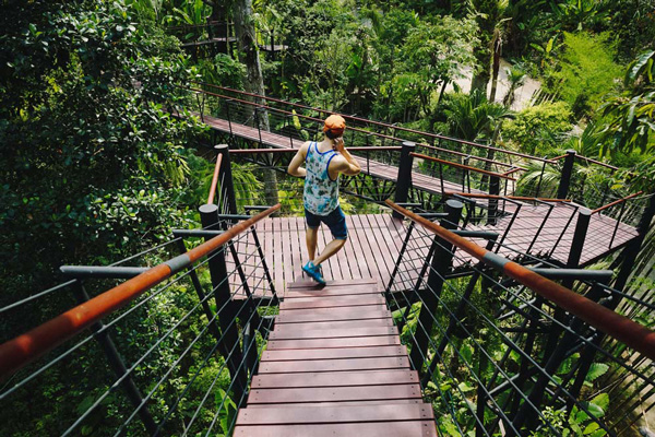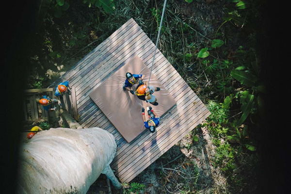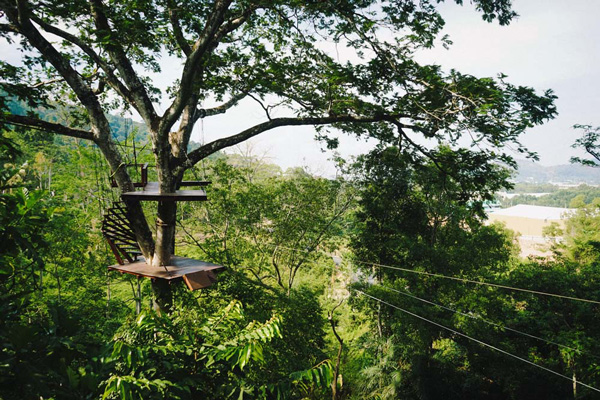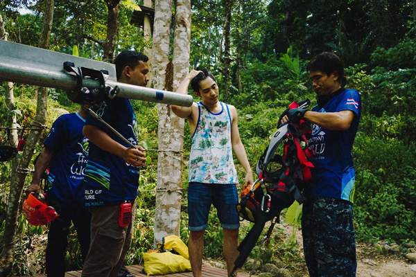 หลายคนคงคุ้นหูกับชื่อ ” Flying Hanuman ” ที่ภูเก็ตซึ่งดังมากๆในหมู่ชาวต่างชาติ เป็นกิจกรรมโหนสลิง (Zipline) ระหว่างจุดนึงไปจุดนึง (Platforms) และมีการหย่อนตัวแนวดิ่ง เรียกว่า Abseil ซึ่ง Flying Hanuman ตั้งอยู่ในพื้นที่เนินเขาและพยายามสร้างทุกอย่างให้กลมกลืนกับธรรมชาติมากที่สุด ชาวต่างชาติมาทีไรติดใจไปทุกราย แต่ครั้งนี้ มีความอลังการมากยิ่งขึ้นกลายเป็น ” Hanuman World ” โลกของหนุมานที่ตื่นเต้นกันตั้งแต่ทางเข้าเลยทีเดียว ใหญ่ขึ้น มีอุปกรณ์มากขึ้น Plateforms มากขึ้น กับเนื้อที่ 60 ไร่ ด้านหน้าเป็นจุด Check-in ดูแล้วเว่อร์วังอลังการงานสร้างมากๆ โครงสร้างทำด้วยไม้ไผ่ยักษ์ กลางโถงเป็นช่องขนาดใหญ่ มีต้นไม้ดูท่าอายุหลายสิบปีลอดผ่านทะลุช่องพอดี จากมุมบนถ้ามองลงมาดูเหมือนแจกัน ดอกไม้เลยทีเดียว