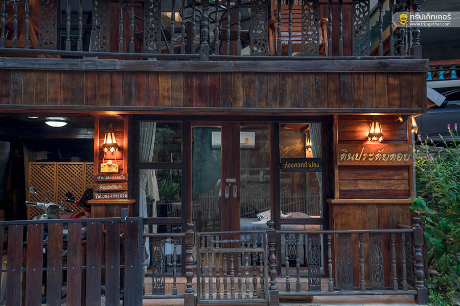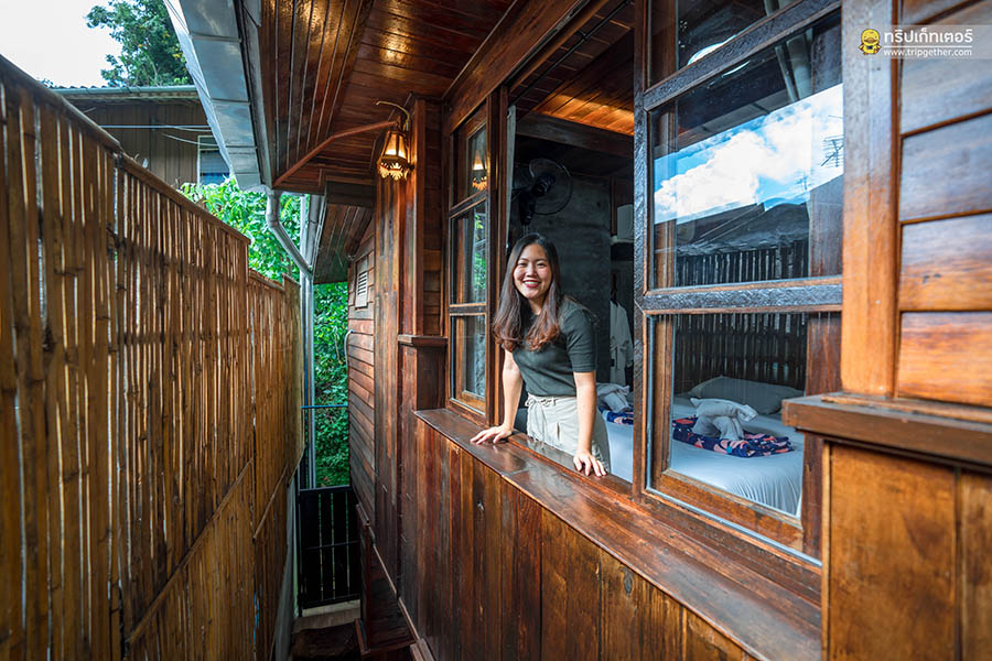 กินข้าวอิ่มก็ถึงเวลาเช็คอินพอดี เราเดินจากร้านอาหารมาแค่ไม่กี่ก้าว ก็ถึงที่พักของเราในคืนนี้กันแล้วที่ บ้านน้อยกลอยใจ เป็นบ้านไม้ทรงล้านนาสุดน่ารัก 2 ชั้น บ้านพักหลังน้อย ตั้งอยู่กลางหมู่บ้าน ใกล้แลนด์มาร์คสำคัญๆ แถมติดถนนเดินทางสะดวกสบาย