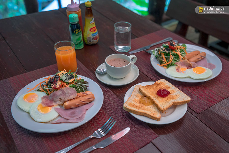 วันสุดท้ายที่แม่กำปองแล้ว เราตื่นมาท่ามกลางอากาศที่เย็นสบาย และเช้านี้ที่พักของเรามีอาหารเช้าเสิร์ฟที่โซนห้องอาหาร เมนูที่เสิร์ฟวันนี้จะเป็นเซ็ต Amarican Break Fast พร้อมขนมปังปิ้งและเครื่องดื่ม ชา กาแฟ