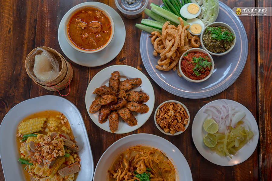 ใช้พลังงานมาเยอะ ขอจัดเต็มกันหน่อย กับทั้ง 5 เมนูแนะนำของร้าน ข้าวซอยไก่ 60 บาท แกงฮังเล 70 บาท ไส้อั่ว 50 บาท ชุดน้ำพริกหนุ่มและน้ำพริกอ่องเสิร์ฟพร้อมผักสด 160 บาท และตำข้าวโพดไข่เค็ม 70 ราคา แต่ละเมนูบอกเลยว่าเข้มข้น ถึงเครื่อง อร่อยทุกเมนูเลย