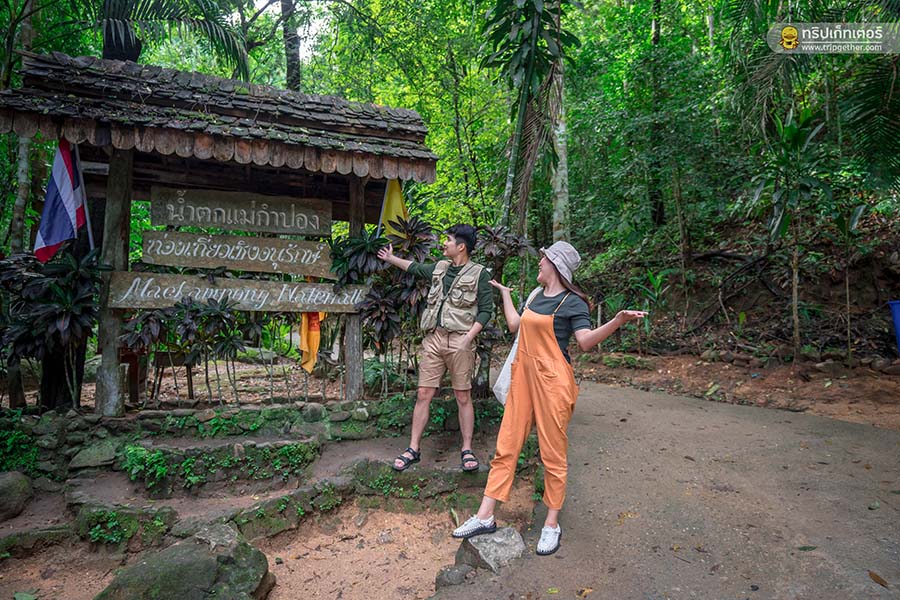 เราใช้เวลากันพักใหญ่ๆ ก็มาถึงน้ำตกแม่กำปอง เริ่มต้นด้วยการถ่ายรูปหน้าน้ำตกเป็นที่ระลึกก่อนเลยจ้า ก่อนจะเริ่มเดินขึ้นไปตามเส้นทาง เริ่มจากชั้นที่ 1 ซึ่งจุดหมายของเราอยู่ที่ชั้นที่ 4 เราทั้งคู่จะเดินไปถึงจุดหมายที่ตั้งไว้หรือป่าว ตามมาเอาใจช่วยกันเลย!