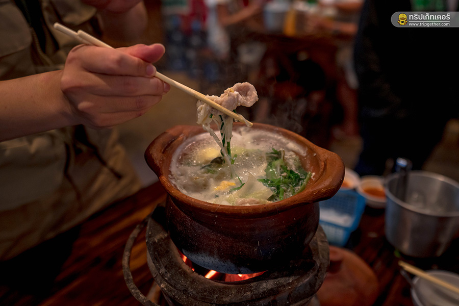 ช่วงเย็นเราเดินเข้ามาในโซนหมู่บ้าน แวะมาที่ร้านหมูจุ่ม หาอะไรร้อนๆ ซดแก้หนาวกันสักหน่อย หมูจุ่มที่นี่จะขายเป็นเซ็ตมีหมูให้ 1 จาน ผักสด ไข่ไก่ เซ็ตละ 199 บาท เรื่องรสชาติถือว่าใช้ได้เลย หมูนุ่ม น้ำจิ้มเด็ด ซดน้ำซุปร้อนๆ ฟินสุดๆ ไปเลย