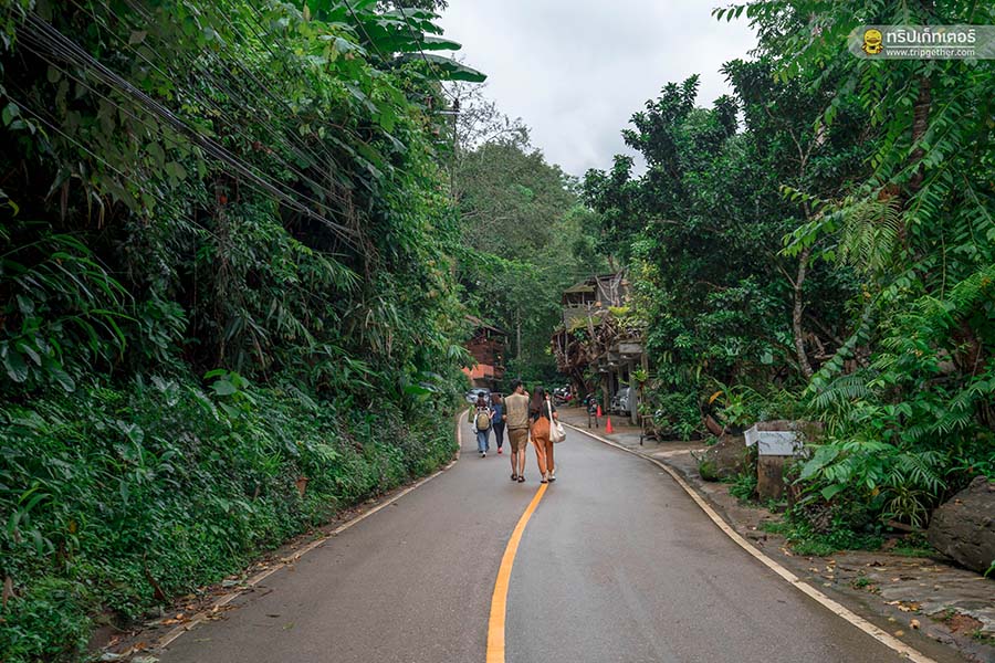 ชื่นชมความสวยงามของน้ำตกกันอยู่นาน เราก็เตรียมเดินกลับไปยังหมู่บ้านแม่กำปอง เพื่อหาของอร่อยๆ กินในมื้อเที่ยง