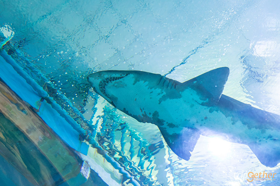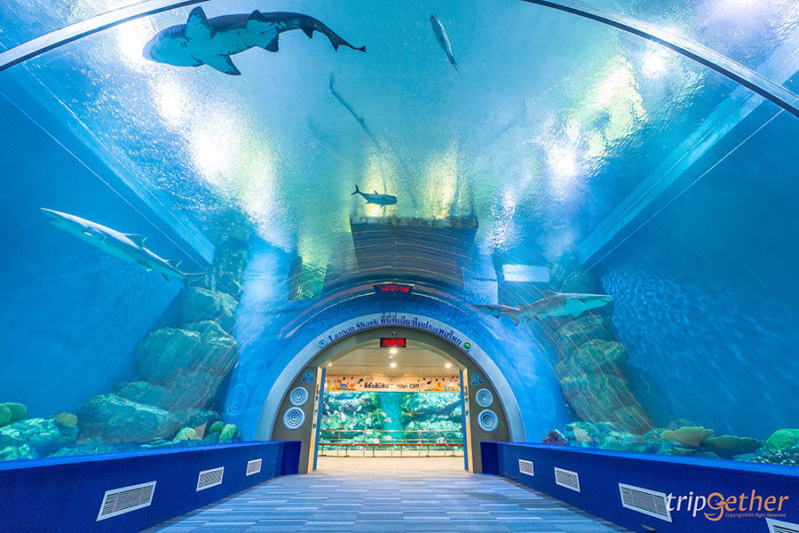 เชื่อว่าหนึ่งในสัตว์ทะเลที่เป็นขวัญใจของทุกคนก็คือฉลาม และที่นี่เราจะได้เห็นฉลามตัวใหญ่ๆ แบบใกล้ชิดกับ อุโมงค์ปลาฉลามที่กว้างสุดในเอเชีย ในส่วนนี้เราจะได้เห็นฝูงฉลามว่ายวนเวียน โดยฉลามที่อยู่ในตู้ก็จะมี ฉลามเสือทราย ฉลาดเสือดาว ฉลามครีบดำ ฉลามมะนาว บอกเลยว่าเป็นครั้งแรกที่เราได้เห็นฟันฉลามแบบชัดๆ ขนาดนี้ เป็นอะไรที่น่าตื่นเต้นมากๆ