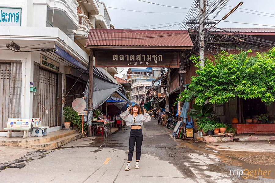 ขับรถมาไม่ไกลจากหมู่บ้านอนุรักษ์ควายไทย มาเดินเล่น กินข้าวกันที่ ตลาดสามชุก 100 ปี ตลาดเก่าแก่ริมแม่น้ำท่าจีนที่มีมีอายุนานกว่า 100 ปี ที่นี่มีกลิ่นอายความเป็นชุมชนเก่า มีบ้านไม้โบราณและร้านขายขนมไทยหายาก บรรยากาศคลาสสิกชวนให้คิดถึงช่วงวัยเด็กสุดๆ นอกจากนี้ยังมีขายของฝาก ของเล่น เสื้อผ้า ของใช้ แถมราคาก็ไม่ได้แพงเลย เพียงหลักสิบเท่านั้น เรียกได้ว่าสามารถมาเดินช้อปปิ้งกันได้ยาวๆ และด้วยความที่ตลาดเปิดมายาวนาน ทำให้มีร้านเด็ด ร้านดัง และร้านในตำนานเพียบ สายตะลุยกินถูกใจแน่นอน