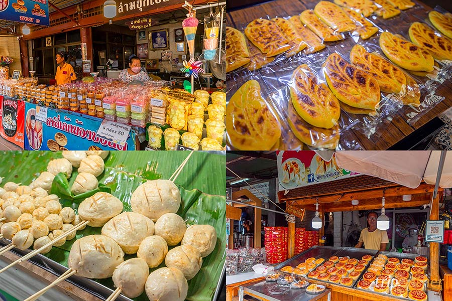 ของกินในตลาดมีให้เลือกเยอะมาก จะกินเล่น ของคาว ของหวานมีครบทุกสิ่ง