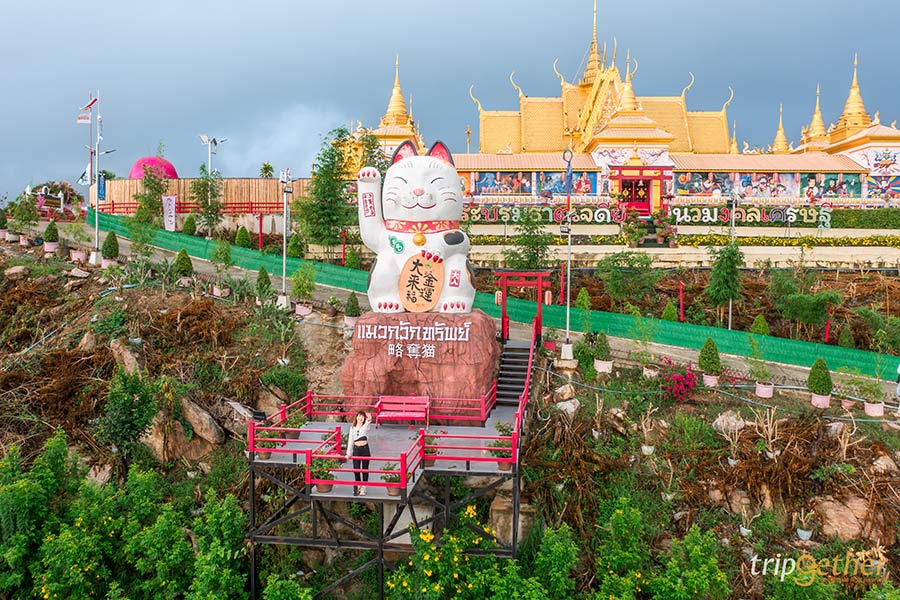 เปิดวาร์ปไปแลนด์มาร์กสุดอลังที่ วัดเขาดิน อ.เดิมบางนางบวช ตัววัดตั้งอยู่บนเขา มาพร้อมกับการตกแต่งที่ผสมผสานความเป็นญี่ปุ่นและไทยได้อย่างลงตัว สำหรับคอนเซปต์ของที่นี่ คือ มาเนคิเนโกะแลนด์ หรือดินแดนแมวกวัก โดยแมวกวักนี้มาจากความเชื่อของญี่ปุ่นที่จะเรียกโชคลาภและดึงดูดผู้คน และยังมีดารุมะ เทพเจ้าแห่งความหวังให้ได้อธิษฐานขอพรด้วย นอกจากนี้ทางขั้นไปยังวิหารบนเขาจะต้องผ่านซุ้มเสาโทริอิคู่กับพญานาค ตรงนี้ให้ฟีลเหมือนอยู่ญี่ปุ่นมาก พิชิตบันไดกว่า 83 ขั้นก็จะเจอกับวิหารสีทองอร่ามและจิตรกรรมฝาผนัง รูปวาดการ์ตูนญี่ปุ่น บอกเลยว่าสวยแปลกตาสุดๆ