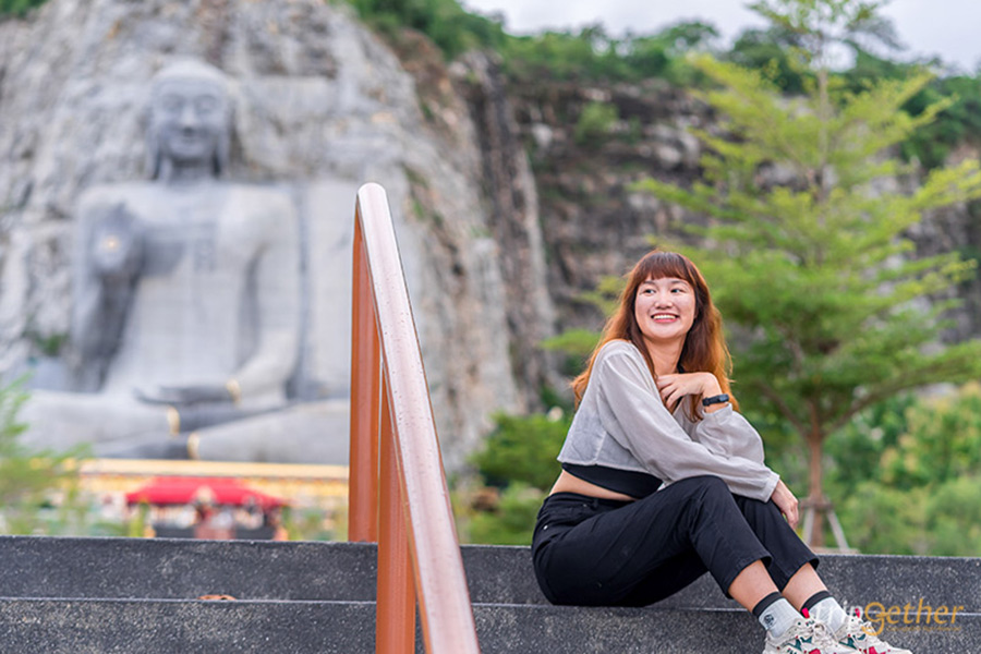 บนเขาจะมีวิหารสีทองอร่าม ข้างในมีพระประธาน หลวงพ่อหร่ำ และรอยพระพุทธบาทให้ได้กราบไหว้กัน แอบกระซิบว่าที่นี่ศักดิ์สิทธิ์มาก ขออะไรได้สมใจหวัง มีคนเคยมาขอเลข ขอโชคลาภก็ถูกรางวัลเพียบ!