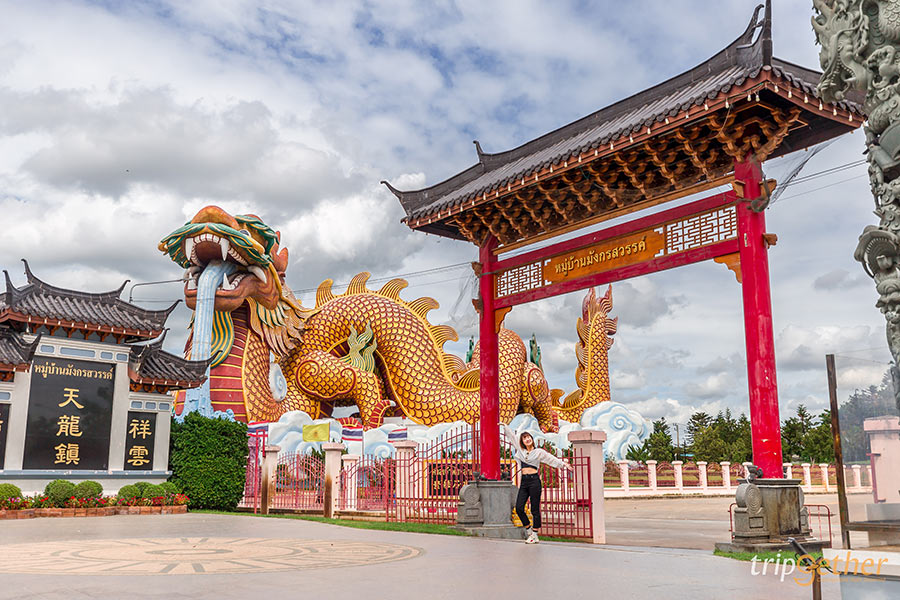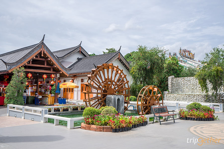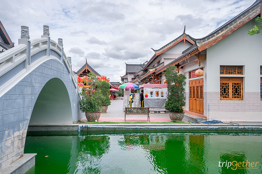 หมู่บ้านเป็นสถาปัตยกรรมจีนโบราณ มีการตกแต่งและประดับประดาที่เต็มไปด้วยกลิ่นอายความเป็นเมืองจีน รวมถึงมีสายน้ำไหลผ่านตัวหมู่บ้าน บรรยากาศชิลล์มากจริงๆ นอกจากนี้ยังมีร้านค้า ร้านขายของฝาก และมีโรงเตี๊ยมขายอาหารและบริการต่างๆ