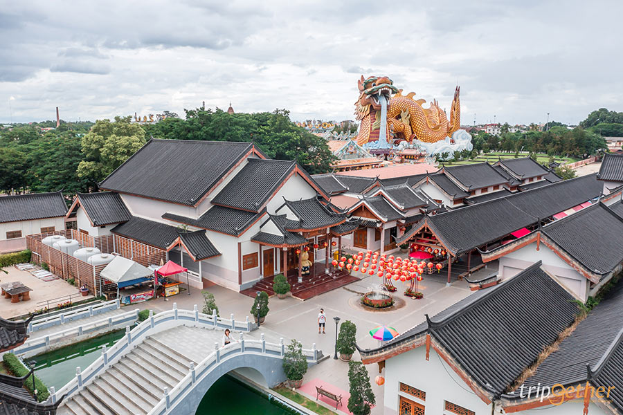 อีกพิกัดที่เที่ยวสุพรรณบุรียอดฮิต ศาลเจ้าพ่อหลักเมืองสุพรรณบุรีหรือพิพิธภัณฑ์ลูกหลานพันธุ์มังกร มีไฮไลท์อยู่ที่มังกรตัวใหญ่ตั้งโดดเด่นอลังการ ของจริงคือยิ่งใหญ่มาก ใครมาอย่าลืมไปถ่ายรูปกันด้วยนะ และข้างๆ กับศาลหลักเมืองมี หมู่บ้านมังกรสวรรค์ ที่จำลองเมืองลี่เจียง ประเทศจีน ถือว่าเป็นหมู่บ้านที่ควรค่าแก่การมาสักครั้งจริงๆ และถึงแม้เราจะไม่ได้ไปถึงจีน แต่ขับรถมาเที่ยวสุพรรณบุรีก็ได้ฟีลดีไม่แพ้กัน
