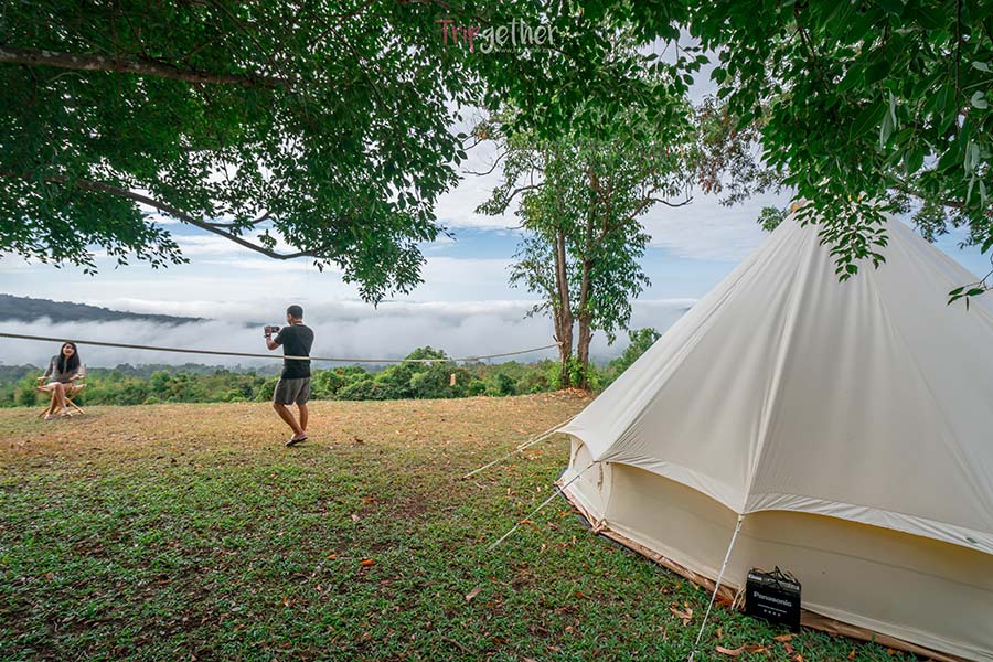 เมื่อเข้ามาภายในที่พักบรรยากาศค่อนข้างสงบ เพราะที่นี่มีแค้มป์ให้บริการเพียง 3 หลังเท่านั้น ใครที่สนใจรายละเอียดเพิ่มเติมสามารถติดต่อได้ที่นี่เลย “จัมทรา แคมป์ปิเนส”