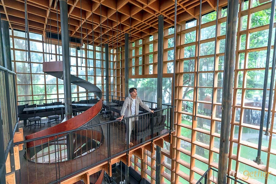 ชมสถาปัตยกรรมโบราณกันไปพอหอมปากหอมคอแล้ว ไปชมสถาปัตยกรรมสมัยใหม่กันที่ เดอะ ไวน์ อยุธยา กันบ้าง เราไม่รอช้ารีบปักหมุดมาที่ร้าน เดอะ ไวน์ อยุธยา ร้านอาหารที่ได้รับรางวัลสถาปัตยกรรมระดับโลก ซึ่งคอนเซ็ปต์ของร้านที่ต้องการนำเสนอไวน์ทุกรูปแบบ ซึ่งต้องบอกก่อนว่าที่นี่ไม่ได้มีแค่ไวน์อย่างเดียว ยังมีทั้งอาหารไทย อาหารตะวันตก เครื่องดื่มกาแฟ และเบเกอรี่
