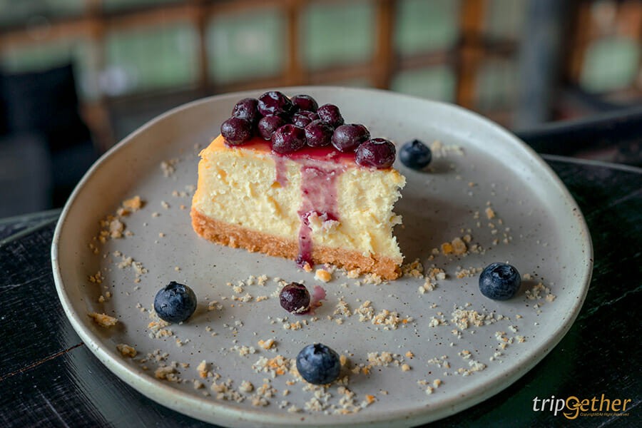 สำหรับมื้อนี้เราสั่งเครื่องดื่มและเบเกอรี่มากินแบบชิลล์ๆ มีทั้ง คาปูชิโน่ร้อน บลูเบอร์รี่ชีสเค้ก และพานาคอตต้าสตรอว์เบอร์รี่ เน้นเสพบรรยากาศและงานสถาปัตยกรรมของร้าน บอกเลยว่าแค่เดินทางมาถึงที่นี่ก็คุ้มแล้ว