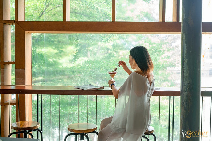 เมื่อมองออกไปด้านนอกร้านยังสามารถมองเห็นวิวของแม่น้ำเจ้าพระยาได้อีกด้วย