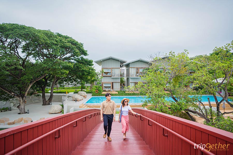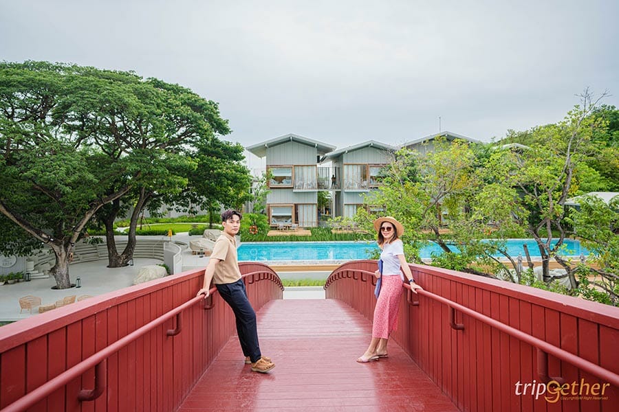 เมื่อเดินทางมาถึงบอกเลยว่าเราสองคนตื่นเต้นมากๆ หลังจากท่ีเช็คอินเสร็จเรียบร้อยแล้ว เราต้องเดินข้ามสะพานสีแดงข้ามไปยังฝั่งเกาะซึ่งเป็นที่ตั้งของที่พักถือเป็นไฮไลท์ที่เราสองคนประทับใจตั้งแต่ครั้งแรกที่เดินทางมาถึง