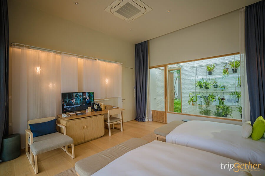 ภายในห้องพักมีบรรยากาศปลอดโปร่ง จัดวางเฟอร์นิเจอร์ไม้โทนสีอบอุ่น และที่สำคัญมีให้เลือกทั้งห้องพักเตียง King sized และ Twin beds และครบครันไปด้วยสิ่งอำนวยความสะดวกมากมาย