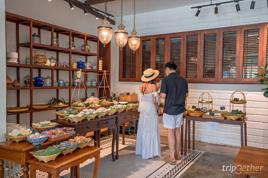 สำหรับเมนูขนมไทยของที่นี่มีให้เลือกหลากหลายเมนู แต่ละเมนูหากินยาก และบางเมนูหากินได้ที่นี่เท่านั้น แพ็คเก็จต่างๆ ก็น่ารักมาก บอกเลยว่านั่งกินที่ร้านไม่พอ ต้องซื้อกลับติดไม้ติดมือกลับไปด้วย