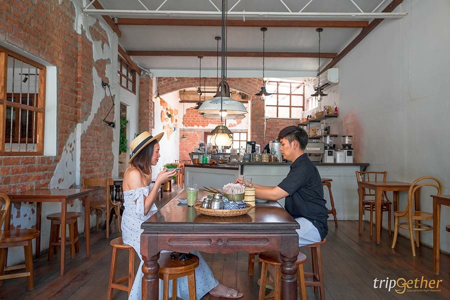 เมื่อเข้ามาภายในร้านจะได้สัมผัสกับบรรยากาศของกลิ่นอายความเป็นไทยวินเทจผสมผสานกับสไตล์โมเดิร์นได้อย่างลงตัว เพิ่มกิมมิคน่ารักๆ ด้วยอิฐและเฟอร์นิเจอร์ไม้ ภายในตัวร้านกว้างขวางรับรองว่าสายหวาน สายขนมเดินเลือกเมนูอร่อยกันเพลินอย่างแน่นอน และใช่! เราสองคนก็เป็นสายหวานเหมือนกันว่าแล้วไม่รอช้า สั่งเมนูอร่อยๆ มากินกัน