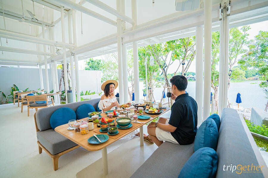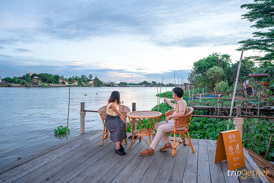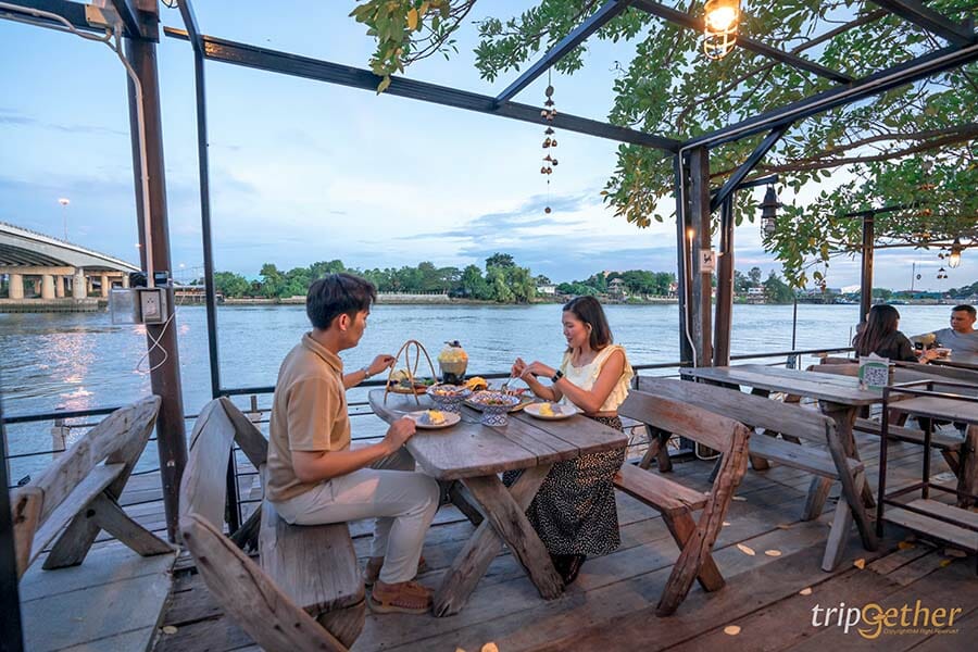 นั่งชิลล์ริมน้ำกินเมนูอร่อยๆ อย่างเพลิดเพลิน ด้วยความที่ตัวร้านเป็นเรือนไทย ทำให้เราสองคนได้ฟีลของความเป็นอยุธยาได้เป็นอย่างดี