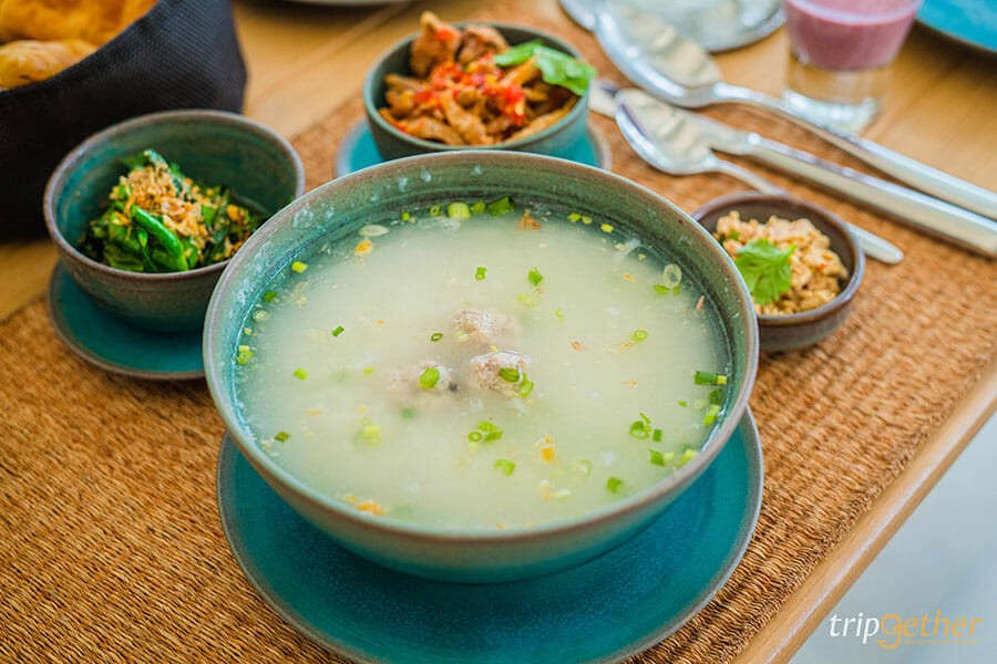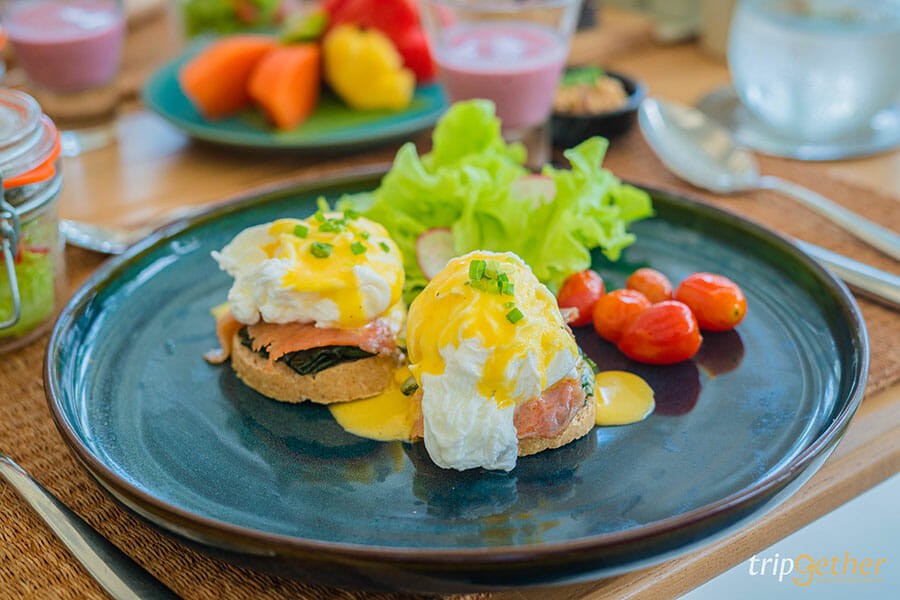 สำหรับอาหารเช้าของ ศาลาบางปะอิน มีให้เลือกเป็นเมนูอะลาคาร์ท และเช้านี้เราเลือกเป็น ข้าวต้มหมู (Chao Phraya Boiled Rice Moo) และ Smoked Salmon Eggs Benedict และยังมีเมนูอื่นๆ ให้เลือกอีกมากมาย นอกจากนี้ยังเสิร์ฟ ลาบไก่ ขนมปัง ผลไม้สด น้ำผลไม้ สลัดผัก และเครื่องดื่มชากาแฟ อีกด้วย