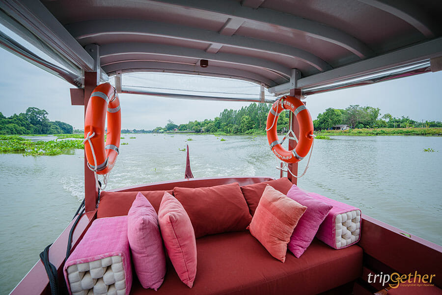 กินมื้อเช้าเสร็จแล้วก็ได้เวลาไป ล่องเรือชมวิวแม่น้ำเจ้าพระยา ซึ่งเป็นบริการสุดพิเศษของที่พัก ที่จะพาเราล่องเรือดูวิถึชีวิตริมแม่น้ำเจ้าพระยา ไปจนถึง วัดนิเวศน์ธรรมประวัติ ใช้เวลาไป – กลับประมาน 1 ชั่วโมง
