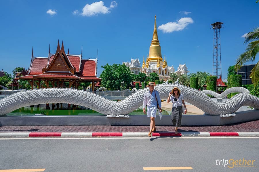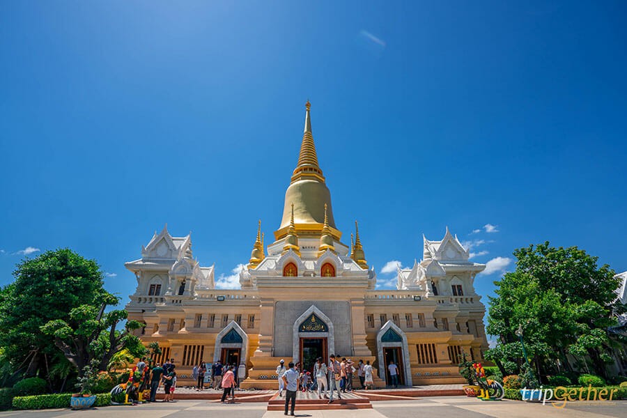 เมื่อเข้ามาถึงในวัด ต้องบอกเลยว่ายิ่งใหญ่และผู้คนคึกคักสุดๆ ด้วยความศักดิ์สิทธิ์ของหลวงพ่อรวย ทำให้ผู้คนจากทั่วสารทิศเดินทางมาขอพรเรื่องโชคลาภ