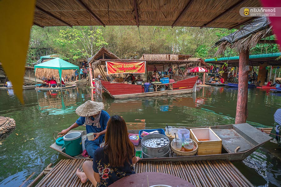 รับประทานกับแบบพออิ่ม ก็เตรียมตัวเดินทางกันไปยัง ตลาดน้ำกวางโจว ตลาดนัดกลางป่า ที่มาพร้อมกับอาหารอร่อยๆ เพียบ ไฮไลท์ของที่นี่จะเป็นโซนที่นั่งริมน้ำให้คุณได้ห้อยขาชิลล์ๆ