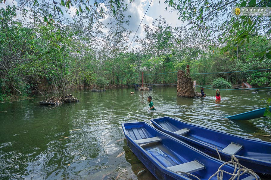 รับประทานอาหารกันจนอิ่มท้องก็ขอเดินย่อย ชมวิวตลาดน้ำกลางป่ากันสักหน่อย หากเดินเข้าไปด้านในจะเป็นจุดต้นน้ำ และยังเป็นพื้นที่อ่างเก็บน้ำเล็กๆ ที่เด็กๆ สามารถลงเล่นน้ำได้