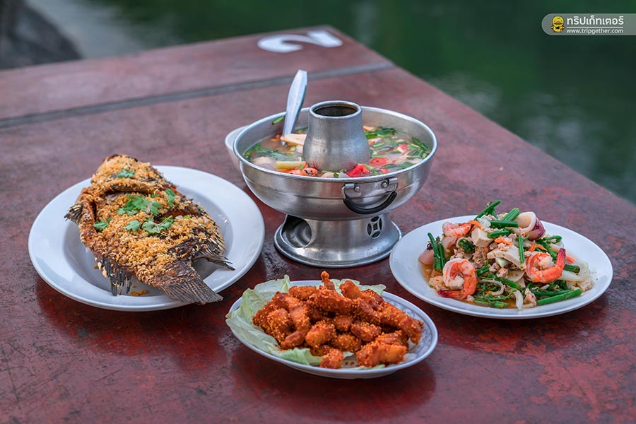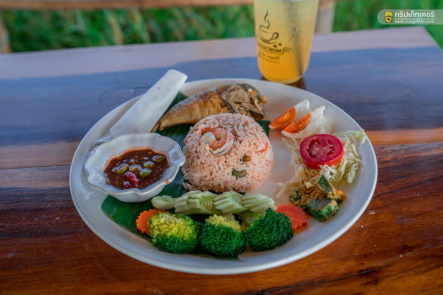 เมนูแนะนำของที่นี่จะเป็น ข้าวน้ำพริกลงเรือ ราคาจานละ 79 กินคู่กับ น้ำตาลสดโซดา แก้วละ 50 บาท รวมมื้อนี้แค่ 129 บาทก็อร่อยได้ในราคาไม่แรง