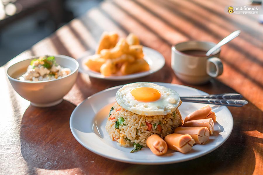 เช้านี้ตื่นมารับอากาศดีๆ และรับประทานอาหารเช้าของทางรีสอร์ท ที่จัดเป็นไลน์บุฟเฟ่ต์แบบจัดเต็ม มีข้าวต้มหมู ข้าวผัด ไส้กรอก ไข่ดาว ต้มจืด และกาแฟ โอวัลตินให้ได้กินกันแบบอิ่มๆ