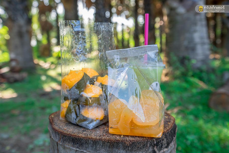 เลือกซื้อผลิตภัณฑ์จากตาลมีทั้ง ลูกตาลเชื่อม ขนมตาล และน้ำตาลโตนด และก่อนกลับเราได้ซื้อขนมตาล 40 บาท ลูกตาลเชื่อม 70 บาท รวมค่าขนมของฝากกลับบ้าน 110 บาท