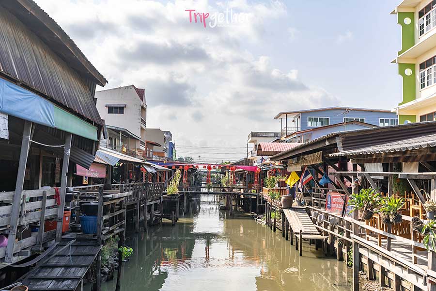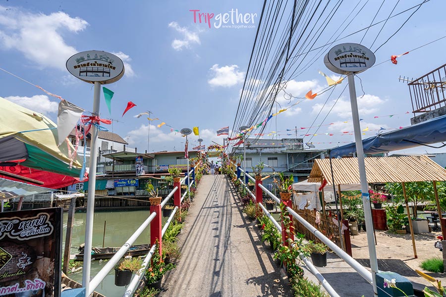 ใจกลางตลาดมีสะพานปูนข้ามคลอง ซึ่งเชื่อมกับแม่น้ำเจ้าพระยาสายใหญ่ ที่จะมีเรือแล่นผ่านไปมาตลอดทั้งวัน