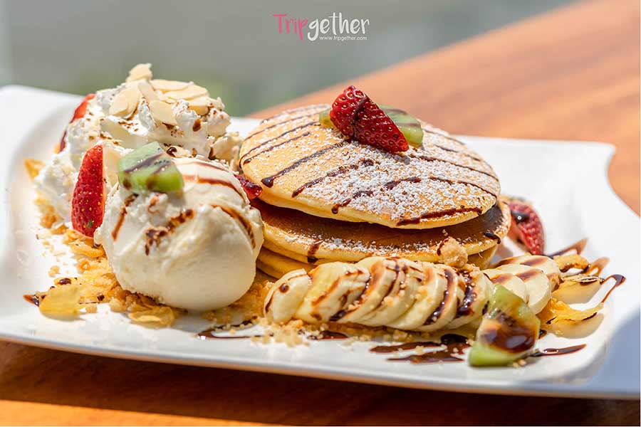ส่วนเมนูจะเน้นเป็นของหวานและเครื่องดื่มซะส่วนใหญ่ เราเลยของลองกับเมนู Nutella Pancake 150 บาท และ Peach Black Tea 95 บาท สุดอร่อยที่เรียกว่าช่วยสู้กับความร้อนของอากาศได้เป็นอย่างดี