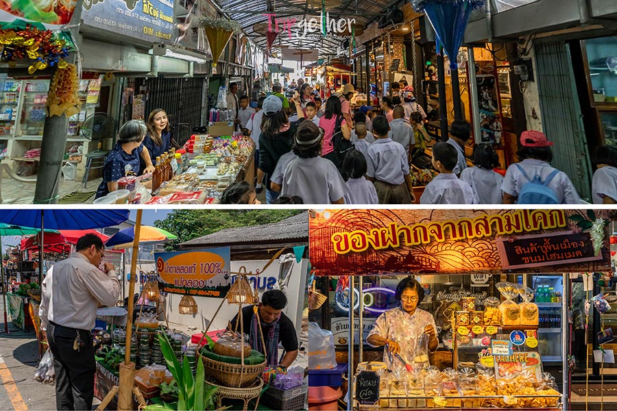 ภายในตลาดอาจจะไม่ค่อยคึกคักเท่าที่อื่นๆ แต่ก็มีข้อดีที่เราจะได้เห็นมุมของวิถีชีวิตที่ค่อนข้างเป็นธรรมชาติ มีร้านขายอาหาร เครื่องใช้ ร้านเสริมสวยบรรยากาศเก่าๆ ที่ชาวบ้านต่างพึ่งพาและใช้อุดหนุนเกื้อกูลกันได้อย่างน่ารัก