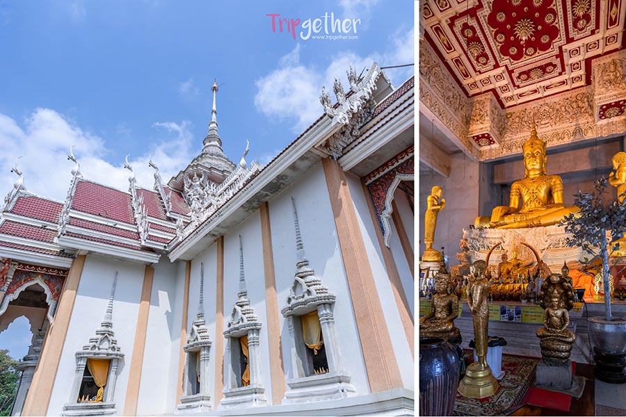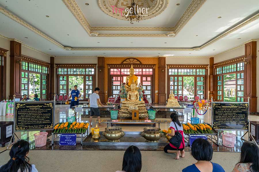 ส่วนอุโบสถและมุมสำหรับไหว้พระทำบุณจะอยู่ลึกทางด้านใน มากมายด้วยจุดพักผ่อน มีทั้งพิพิธภัณฑ์ที่รวบรวมโบราณวัตถุ เครื่องใช้เก่าๆ มุมศาลาริมน้ำให้เพลิดเพลินกับเต่าและปลาน้อยใหญ่ และที่สำคัญขณะนี้กำลังสร้างเจดีย์หอยองค์ใหม่ขนาดใหญ่ที่สุดที่มีความสูง 59 เมตร และกว้าง 40 เมตร