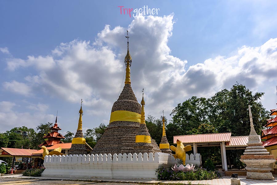 ขอเล่าประวัติที่มาของวัดกันสักหน่อย วัดนี้ถูกสร้างขึ้นในปี พ.ศ. 2538 โดยพระคุณครูสุนทร ซึ่งในอดีตหลวงพ่อเคยออกธุดงค์ที่ประเทศพม่าและเกิดความประทับใจ วัดนี้จึงผสมผสานระหว่างศิลปะแบบไทยและพม่าเข้าด้วยกัน และระหว่างการสร้างวัดนั่นเอง ก็ได้ขุดพบกับเปลือกหอยนางรมยักษ์ อายุกว่าพันปี ซึ่งสันนิษฐานกันว่าเมื่อก่อนพื้นที่นี้เคยเป็นทะเลมาก่อน ซึ่งด้านบริเวณทางเข้าวัดจะโดดเด่นด้วยเจดีย์หอยองค์ใหญ่ 2 องค์ เด่นตระหง่าเป็นแลนด์มาร์ค