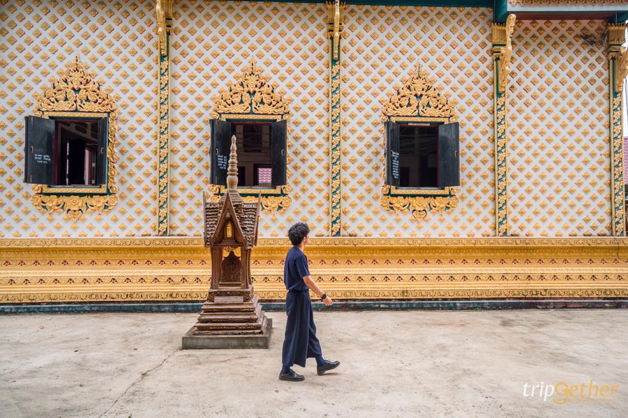 การเดินทางของเราเริ่มต้นกันที่ตัวเมืองกำแพงเพชร ขับรถออกมาราวๆ 8 นาที เราก็จะเข้าสู่พื้นที่ของตำบลท่าขุนราม อำเภอเมืองกำแพงเพชรซึ่งบรรยากาศสองข้างทางระหว่างขับรถมาได้ฟีลความสงบมากๆ ทุกๆ คนที่นี่ดูใช้ชีวิตกันอย่างสบายๆ ไม่รีบร้อน สถานที่แรกที่เรามาก็คือ วัดอุทุมพร ต้องบอกเลยว่าเป็นวัดที่มีเอกลักษณ์ไม่เหมือนวัดอื่นๆ เพราะใบเสมาของที่นี่แกะสลักมาจากไม้สักทองทั้งหมด! และที่ยิ่งกว่านั้นใบเสมาทุกใบมีซุ้มไม้ทรงไทยขนาดย่อส่วนที่มีพุทธรูปแกะสลักซึ่งเป็นพระซุ้มกอและพระกำแพงปางลีลาประดับสลับกันโอบล้อมทั่วโบสถ์