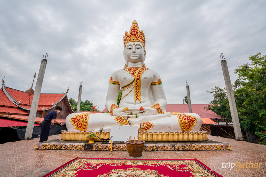 ด้านข้างเราจะพบกับพระพุทธรูปองค์ใหญ่เด่นตระหง่าน หลวงพ่อทันใจรวยทรัพย์ พระพุทธรูปที่เป็นที่เคารพศรัทธาและเป็นที่พึ่งทางใจของชาวชุมชน แอบกระซิบว่าชาวบ้านและนักท่องเที่ยวต่างมาขอพรกับหลวงพ่อทันใจรวยทรัพย์กันไม่น้อยเลย เมื่อสำเร็จก็จะนำไข่ 99 ฟอง มาถวาย บอกเลยว่าถ้ามาเที่ยวกำแพงเพชรต้องมาสักการะให้ได้