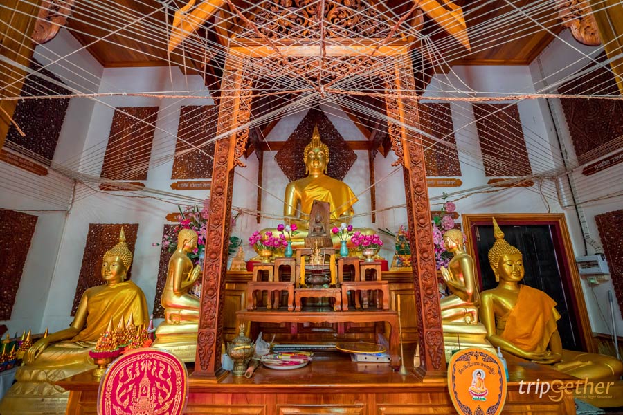 ความรู้สึกเมื่อเดินเข้าไปกราบองค์ท่าน บอกเลยว่าสงบและยิ่งใหญ่มากๆ นี่แหละที่เรียกว่าพลังของความศรัทธา นอกจากนี้ ภายในวิหารยังมีเสาวิหารซึ่งเป็นเสาที่ชาวบ้านรวมตัวกันสร้างจากไม้มะค่า ไม้มะหาด เป็นศิลปะล้านนา มีจำนวนทั้งหมด 44 ต้น เสาวิหารเป็นคู่เนื่องจากความเชื่อของคนเหนือเชื่อว่าเลขคู่เป็นเลขมงคล เป็นวัดที่มากกว่าวัดจริงๆ เพราะเป็นแหล่งรวมศิลปะที่มีคุณค่าของท้องถิ่นเอาไว้ด้วย อีกทั้งบริเวณพื้นที่ของวัดเป็นลานกว้างเหมาะกับการเดินเล่นชิลล์ๆ มาก