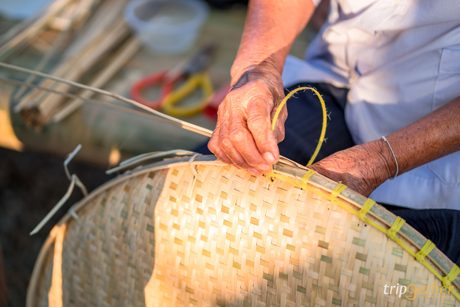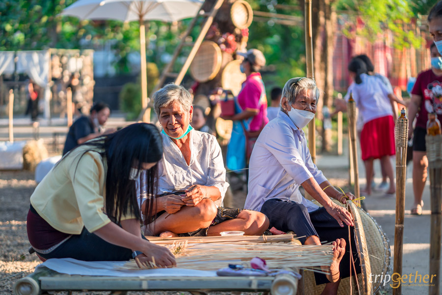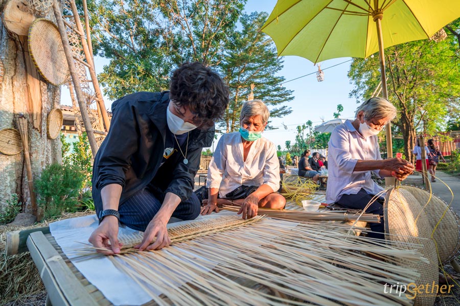 นี่เลย! ถ้าใครสนใจอยากลองถักตะกร้าหรือสานกระด้ง ก็ลองทำได้เลย มีคุณครูเป็นคุณยายทั้งสองท่าน น่ารักมากๆ