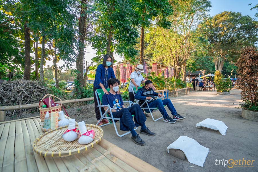 เที่ยวมาทั้งวันแล้ว เราก็มาผ่อนคลายเส้นและกล้ามเนื้อกันสักหน่อย ที่นี่มีบริการนวดด้วยนะ ไม่ว่าจะเป็นนวดคอ บ่า ไหล่ นวดเท้า หรือนวดแบบลูกประคบก็มีให้เลือก บริการดีมาก นั่งผ่อนคลายไปชิลล์ๆ รับลมเย็นๆ กับบรรยากาศชุมชน นี่แหละความสุข!