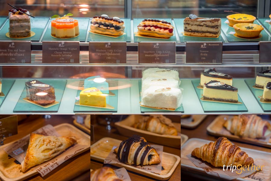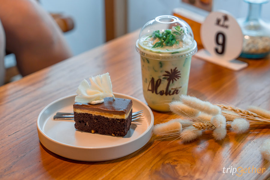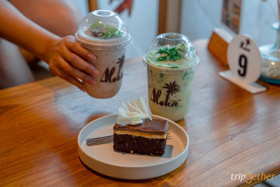 ในส่วนของเมนู ที่ Aloha Beach Cafe มีทั้งเบเกอรี่ เมนูครัวซองค์ ไส้แน่นๆ และเค้กที่หลากหลาย รวมถึงเครื่องดื่มที่บอกเลยว่าแต่ละเมนูครีเอทสุดๆ อย่างเมนูที่เราสั่งมาจะเป็น Lod chong fresh milk shank ราคา 159 บาท เป็นลอดช่องนมสดปั่น ที่ท็อปด้วยเส้นลอดช่องหนึบๆ ตามด้วยกลิ่นหอมนมสดขึ้นจมูก กับอีกเมนูก็คือ Khaolam Milk Shake ข้าวหลามมิ้ลค์เชค ราคา 159 บาท รสหวานกำลังดี หอมมันจากส่วนผสมของข้าวหลามสีนิลและนมสด ท็อปปิ้งด้วยมะพร้าวอ่อน อร่อยมากก